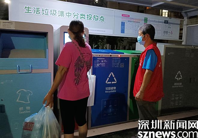 读特客户端·深圳新闻网2021年9月28日讯(记者 潘峰)“阿姨,你好,垃圾袋里的剩饭剩菜属于厨余垃圾,要倒进绿色的垃圾箱里,外层的垃圾袋属于其他垃圾,要扔进灰色的垃圾箱里,下次记得这样分类。”近日,在盐田区海山街道梧桐社区君临海域小区集中分类投放点,垃圾分类督导员正在指导居民投放厨余垃圾。