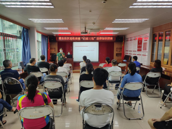 “门前三包”普法宣传工作离不开社会力量的集体参与,如何让“门前三包”普法理念落地生根也是沙头角街道一直探索的路子。日前,街道联合辖区四个社区,同步开展“门前三包”普法讲座,“没事普法、遇事讲法、有事用法”成为沙头角街道的真实写照,真正做到让法律服务触手可及。