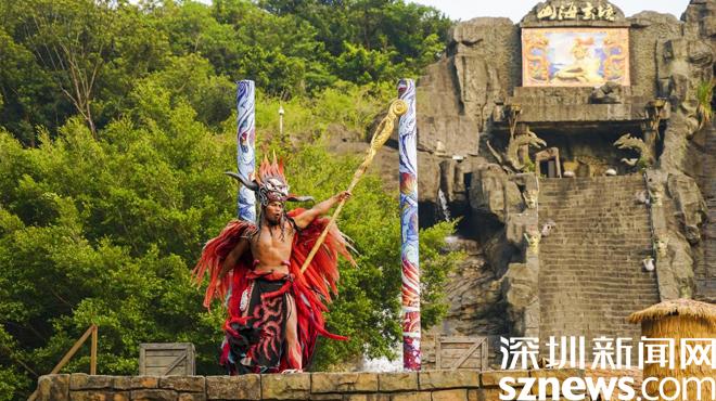 园区内外国旗飘飘,华丽的山海大巡游准时在小镇拉开序幕,热情洋溢的演员身着精致的服饰,元气满满地踩着节拍行进,不时有小跑着前来的小游客嬉笑着与演员们拍手互动。 升级改造后的山海玄境也如约来袭,深受游客喜爱的奇幻水秀在全面升级后的首演便引来了观众的阵阵欢呼,坐在前排的游客们踊跃参与节目互动。尚有几分炎炎的日光下,喷洒向观众席的水雾给游客们带去了清凉和欢笑。今年国庆,独具风情的云海红车更是吸引了不少游客的眼球。那一抹动人的红色穿行于绿林山间,万绿丛中一点红,给游客的国庆之旅增添别样色彩。