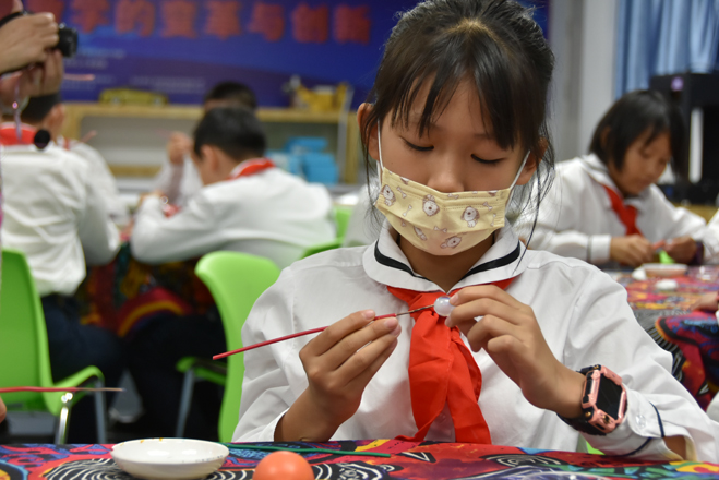 盐田区田心小学多年来一直非常重视在师生中开展传统文化教育和传承,在特色教育方面先后被评为“全国写字教育先进单位”“深圳市书法教育名校”“广东省书法教育名校”“全国写字教育实验学校”。此次借“中英街文化体验营”开营契机,田心小学引进非遗内画传承人万欢来校园设立工作室,系统地向学生传授非遗内画技艺,打造沉浸式非遗文化体验,将非遗传承融入素质教育,促进非物质文化遗产的保护、传承与发展,同时也使得素质教育的题材更加丰富,内容更加精彩。