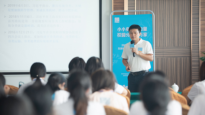 “是‘育人’让我们相聚在此,因为我们在乎我们的家园,我们的家园需要我们来守护,同时,我们也在乎孩子们能成为什么样的人。我们期待孩子们能成为具有责任感、关心他人、关心环境、关心社会的人。”万科公益基金会项目经理吴丹在典礼上为全体教师学员介绍了2021年盐田区生活垃圾分类蒲公英校园计划的起源和实施背景,并向教师学员作出深刻寄语,指出了蒲公英校园计划“环境保护”与“育人”的精神内核。