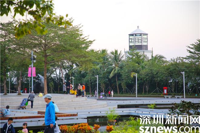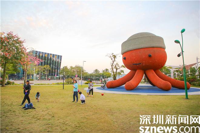 开阔平敞的草坪、活力现代的海浪木平台、精致灵动的水景区……在中央公园,宽敞的活动空间内布设有形态各异的雕塑艺术品和富有童趣的游乐设施,增添了不少游园趣味性,加上各类开花植物装点其间,构建起一个色彩缤纷、季相交替的城市空间。