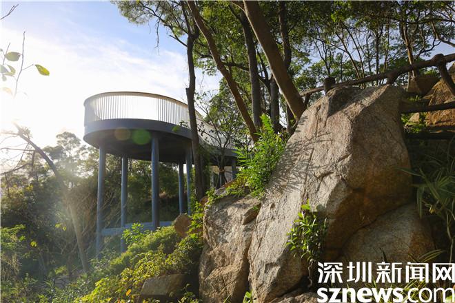 读特客户端·深圳新闻网2021年12月16日讯(记者 陈琳君 李小辉)漫步林间,畅享山林野趣;登高望远,尽览无边海景。作为盐田区半山公园带的重要组成部分,梅沙湾公园位于盐田区梅沙街道,占地总面积约6万平方米,为原有鹅公岌社区公园提升改造而成,是一个集景观和游憩功能于一体的多元化特色城市休闲公园。