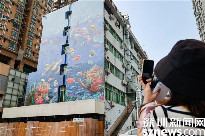 近来,熟悉沙头角街道的居民会发现,曾经破旧暗淡的老旧墙体变了样,墙上有鱼灯舞和山海景观等富有盐田特色的绘画,吸引了不少人驻足观赏和拍照打卡。据悉,由于辖区老旧住宅较多,部分区域存在墙体老旧、残破等问题,沙头角街道引入“城市设计师”理念,融入山海和鱼灯舞文化特色,通过彩绘完成10处墙体“由旧转新”,为市民游客提供了多处“网红”景点,受到了居民群众的广泛好评。