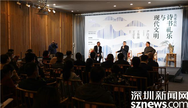 读特客户端•深圳新闻网2021年12月20日讯(记者 陈琳君 李小辉)诗书礼乐,文明盐田。12月20日下午,作为2021年深圳读书月盐田分会场主题活动之一,“诗书礼乐与现代文明”主题论坛在紫禁书院精彩开讲。本次论坛邀请了国务院参事、国家文化艺术智库特聘专家王京生,清华大学美术学院教授、博导王鲁湘,聚焦城市现代化文明建设,探讨了“诗书礼乐”在城市文明中所起到的作用,为深圳更好地打造文明城市提供理论借鉴。盐田区人大常委会主任乔宏彬,盐田区委常委、宣传部部长张玉领出席活动。论坛由深圳市政协文化文史委主任、深圳市阅读联合会会长尹昌龙主持。