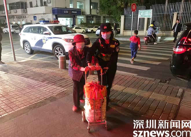 巡逻小组带班民警蓝景在了解清楚事情缘由和确认该女子身份后,表示一定会将老人安全送回家,并对其热心举动表示赞许。执勤民警将老人扶上车,在得知老人听力受损且腰椎受伤行动不便的情况下,一边安抚老人情绪,一边耐心与老人沟通。了解老人详细信息后,民警将老人送至其沙头角住所,因不想让儿子、亲人见此情况担心,老人央求不用送至楼上。执勤民警蓝景确定老人安全回家后,暖心嘱咐老人:“出行一定要有家人陪同,尽量减少夜间外出,这样才真的不会让家人担心。”老人答应民警嘱托并表示感谢。