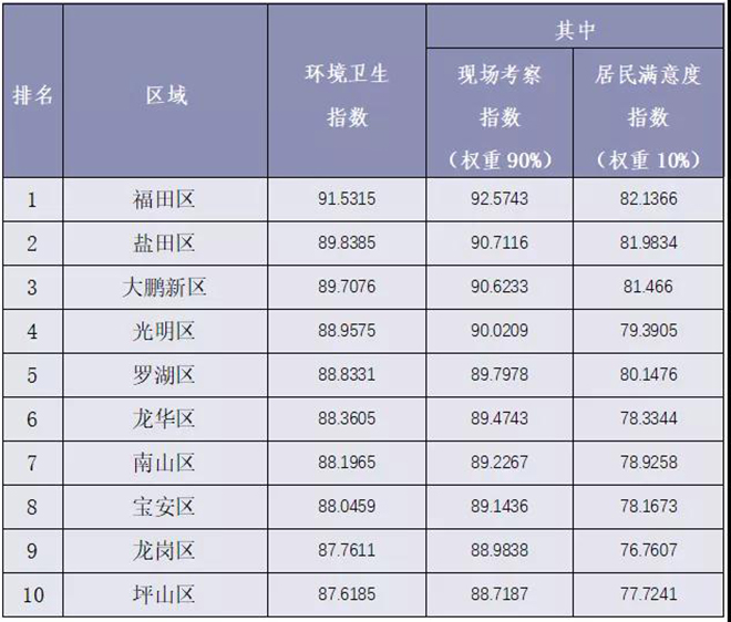 读特客户端·深圳新闻网2022年1月5日讯(记者 潘峰)1月5日,深圳市城市管理和综合执法局发布了2021年全年各区(新区)环境卫生指数得分及排名。榜单显示,盐田区环境卫生指数得分和排名揽获2021年度全市第二名。
