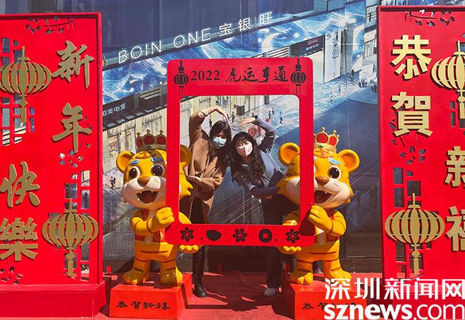 盐田一商场布置的虎年艺术装置,吸引市民前来拍照打卡