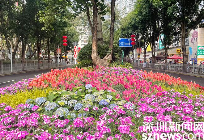 临近春节,盐田道路边的绿化带开始换上“新装”