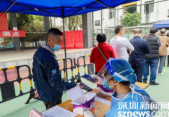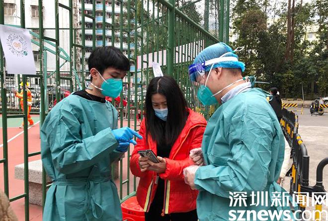 读特客户端·深圳新闻网2022年2月25日讯(记者 潘峰 赖思为)扫描粤核酸码、发放试管……2月24日下午,记者在盐田区沙头角25小区篮球场核酸检测点,看到大学生志愿者张叶身穿隔离衣、头戴隔离面罩,正耐心地服务居民群众开展核酸检测工作。