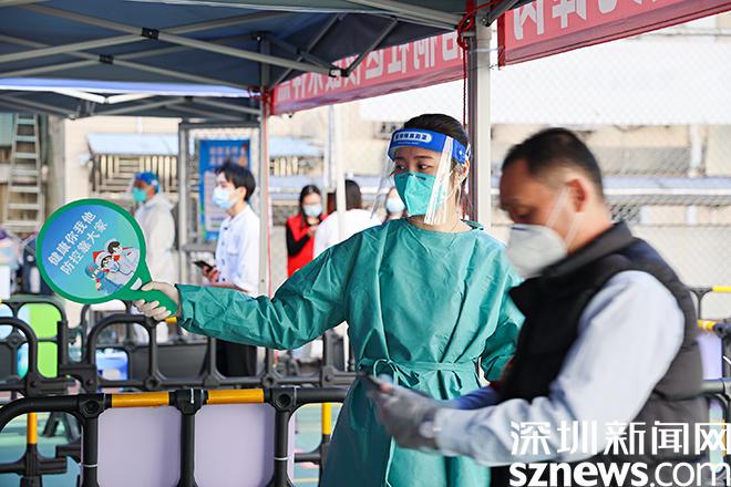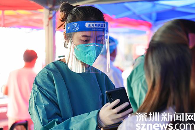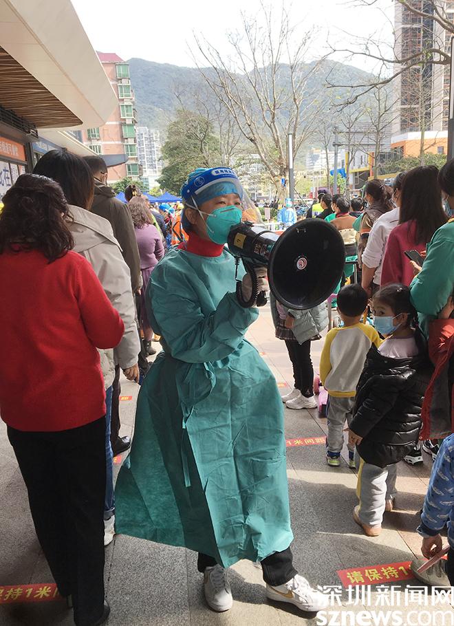3月8日上午,她穿梭在盐田街道东港公园、御景佳园两个核酸检测点,维持秩序、劝导居民、协调防护物资,一天下来步行了近3万步。