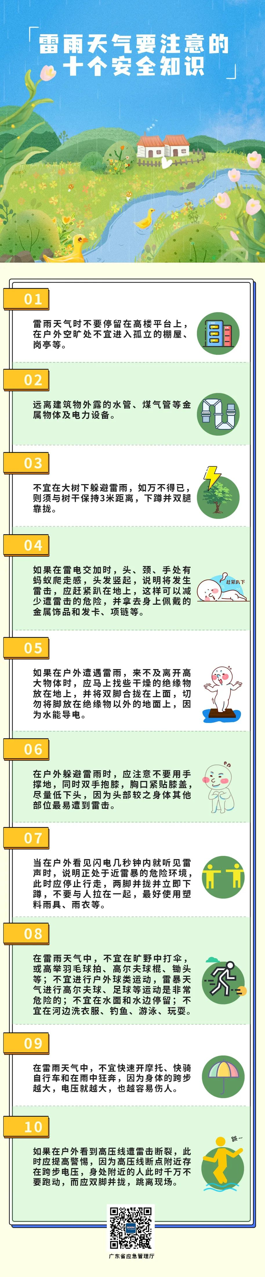 二要注意防雷,雷雨天气尽量减少外出,不在树下等不安全地方停留。