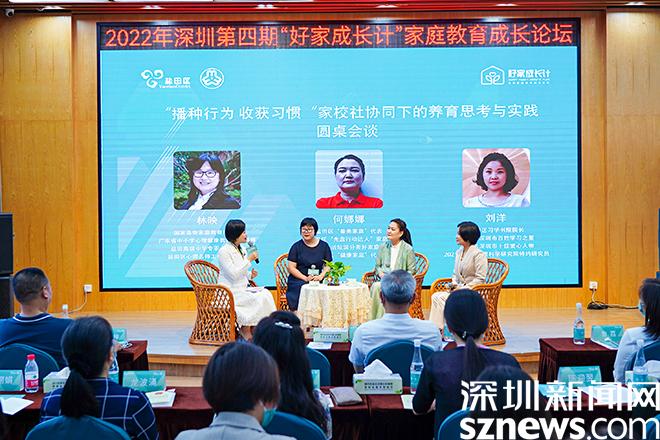 本次论坛还特设“圆桌会谈环节”,邀请盐田区高级中学心理教师、国家高级家庭教育指导师林映,盐田区“最美家庭”代表何娜娜,盐田区习学书院院长刘洋,分别就孩子学习习惯的养成、家务劳动习惯的养成、家长角色的转换及如何参与孩子的成长等话题进行了深入又热烈的讨论,引起线上线下参与者的共鸣,将本次论坛推向高潮。