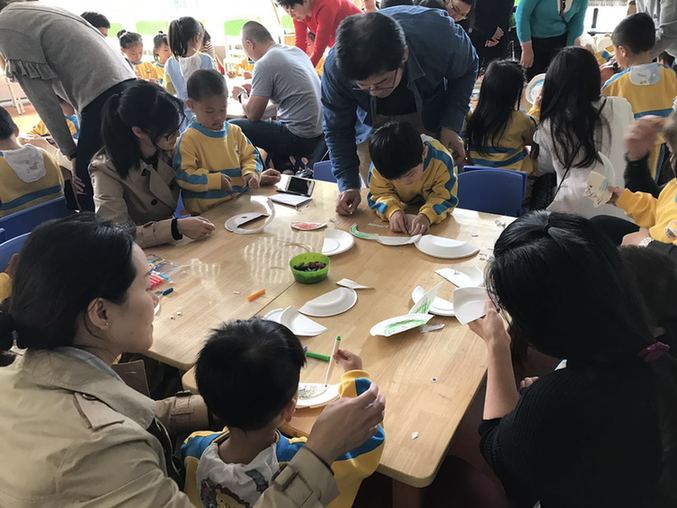 在活动的第三环节,扩展绘本内容进行智慧手工坊,为孩子提供简单的纸盘以及一些颜色和线条、多彩的叶子,鼓励孩子自己动手做喜欢的小恐龙,孩子们齐齐动手动脑,全程精彩不断,笑声迭起。这样的启蒙阅读,让孩子们在活动中体会阅读的乐趣,收获良好的生活习惯。