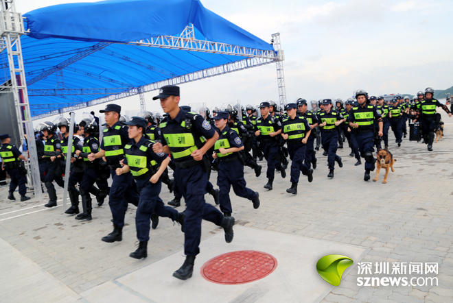 出席活动的领导首先观看了盐田区反恐工作视频汇报片,随后,参加演练的15支反恐专业队伍和重点单位、人员密集场所群防群治队伍共350人,围绕反恐成员单位拉动训练、反暴恐应急处置拉动等科目进行拉动训练。盐田交警大队“铁骑队”、广东边防总队机动支队一大队、盐田区海防线海上联勤联动单位先后进行了技能操练及船艇拉动等汇演,以整齐有力的动作和娴熟的战术技能展示了公安干警及边防战士斗志昂扬的精神面貌,彰显了其维护社会公平正义、坚决打击违法犯罪分子的信心和决心。
