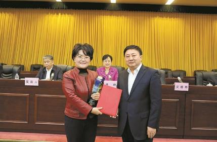 盐田区长吴德林向盐外校长谢红越授予“区长质量奖”。叶运强 摄