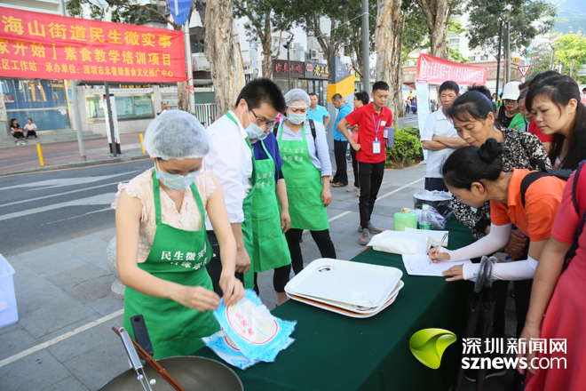 在活动展示区,记者看到,鹏湾社区还以“易拉宝”海报的形式展示2017年民生微实事项目成果,并以发放宣传折页、介绍服务内容等方式集中宣传了社工服务及八小时以外监督联络站等内容。在美食区内,在了解民生微实事项目——素食进社区服务项目后,不少市民现场加入到美食制作过程中。此外,为进一步调动居民群众参与活动积极性,活动还特别设置了集赞兑奖区,市民只需关注“鹏湾社区”微信公众号,转发盐田建区20周年视频或拍摄现场活动照片发微信朋友圈,集满20个赞,即可获得奖品一份。