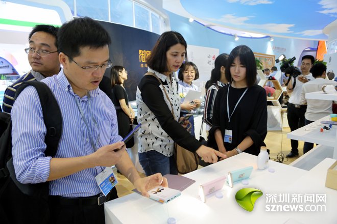 记者看到,盐田区周大福、百泰等几大珠宝企业携黄金珠宝设计新品和精品亮相主展馆。2017囍福设计大赛获奖作品作为盐田区文化产业的创新成果惊艳亮相,打破以往人们对传统结婚金饰的定位,秀出了世界民族文化下的“合”之魅力,打造出“福地、福金、福运”的“盐田珠宝”品牌。在周大福的自助试戴柜旁,不少女性观众聚集在此,拿出手机扫描柜体上的二维码,便可开柜拿出中意的首饰进行试戴,如现场购买还可享受8.8折的优惠价格。