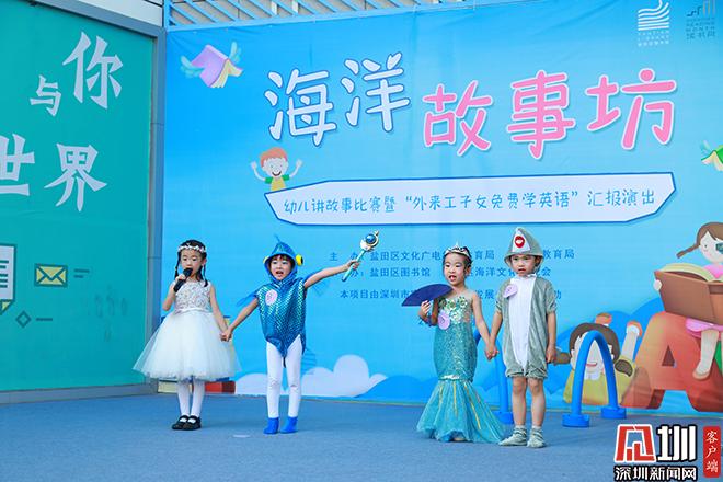 见圳客户端•深圳新闻网讯(记者 邓雪婷 通讯员 刘俏)为营造更加浓郁的海洋文化氛围,配合第二十届深圳读书月及2019年海洋文化系列活动的开展,11月21日,盐田区图书馆围绕“海洋文化”主题推出洋溢“海洋味”的“海洋故事坊——幼儿讲故事比赛暨‘外来工子女免费学英语’汇报演出”活动在盐田区图书馆下沉广场热闹上演,来自盐田区各幼儿园的20组小朋友轮番登场,为辖区居民们带来了一场童趣味十足的精彩故事秀。