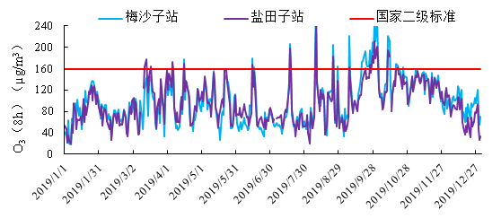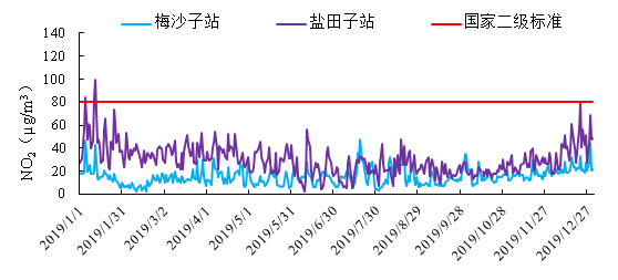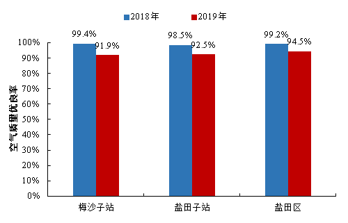 图2 2019年盐田区环境空气监测点空气质量优良率同比变化