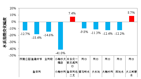 图4 2019年盐田区主要河流水质指数与上年同期对比