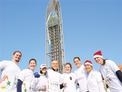 这是去年在大梅沙风筝节上,在深工作的外国友人一起参加放风筝,并在大梅沙愿望塔下合影留念。 深圳商报记者 李 博 摄 时间:8月8日 星期三