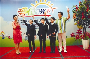 艾滋病公益活动明星也来助阵。在昨天的启动仪式上,卫生部预防艾滋病宣传员濮存昕、周涛也来到了这群孩子们中,和他们一起观看艾滋病防歧视宣传片,欣赏他们的精彩表演以及和孩子做互动游戏。