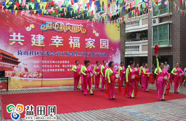 据悉,倚山社区在社区文化建设方面做了大量卓有成效的工作,今年以来,居委会组织开展的一系列文体活动都取得了良好成效,居民积极踊跃参与,文艺精品不断涌现。作为本届“邻里节”开场节目的《健身腰鼓》还代表盐田区体委参加了深圳市体育健身展演,并获得二等奖的好成绩。
