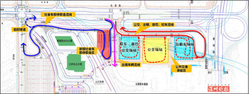 ▲改造后公交接驳区、即停即走区交通组织流线。