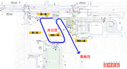 ▲改造后口岸办公车辆交通组织流线。
