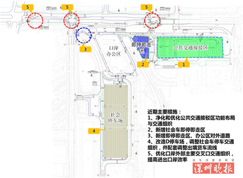 此次调整中,市交委还优化出境货车交通流线,实现社会车辆与货运交通分离。据介绍,出境货运车辆将从原来D停车场西侧道路出境改为从东侧道路出境,避免社会车辆与出境货车通行交织,"该项措施作进一步观察评估,待完善相应配套设施设置后启用。"相关负责人介绍。