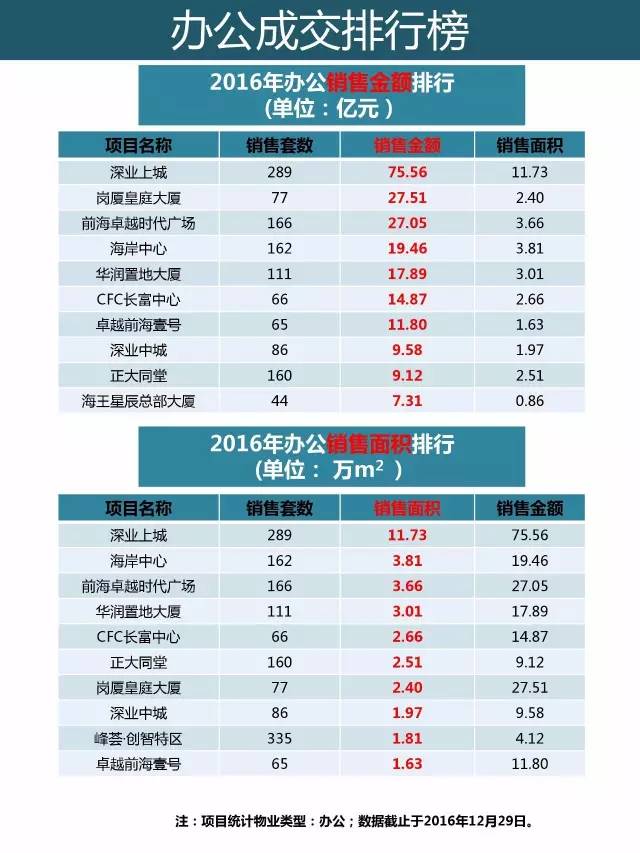 2016年深圳楼市排行榜:房企 住宅 片区 商业 办公top10全在这