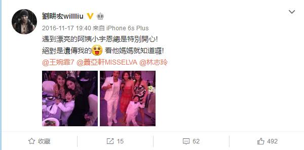 因为那次刘畊宏还发了一条微博,开玩笑说儿子遇到漂亮阿姨总是特别开心,随自己,然后配了两张自己家人跟王婉霏、萧亚轩等人的合影……