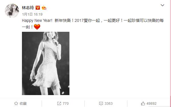 不仅如此为了证实林志玲和言承旭已经复合。网友还翻出了1月1号言承旭过生日那天。林志玲就在微博上写着的: