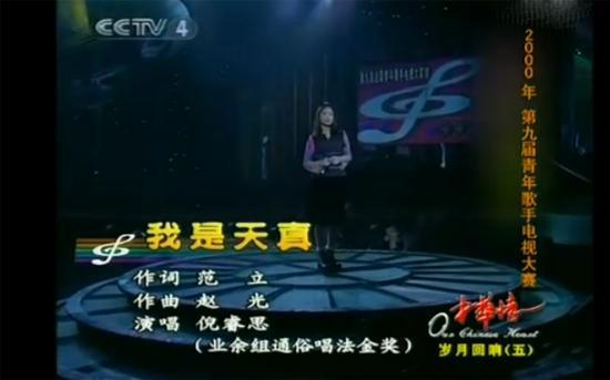2000年,16岁的倪睿思获得“第九届全国青年歌手电视大奖赛”业余组通俗唱法冠军,一首《我是天真》红遍全国,那时的倪睿思给观众的印象是婉约清纯聪明灵气。她嗓音纯洁干净,17岁登上春晚舞台,献唱《二十年后再相会》。