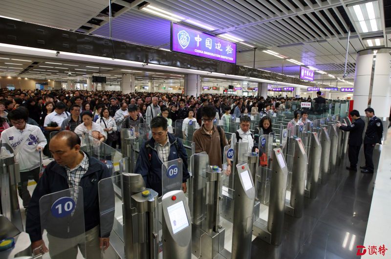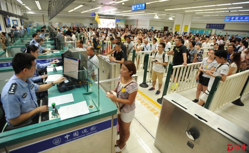 深圳边检总站开足查验通道应对出入境客流高峰。
