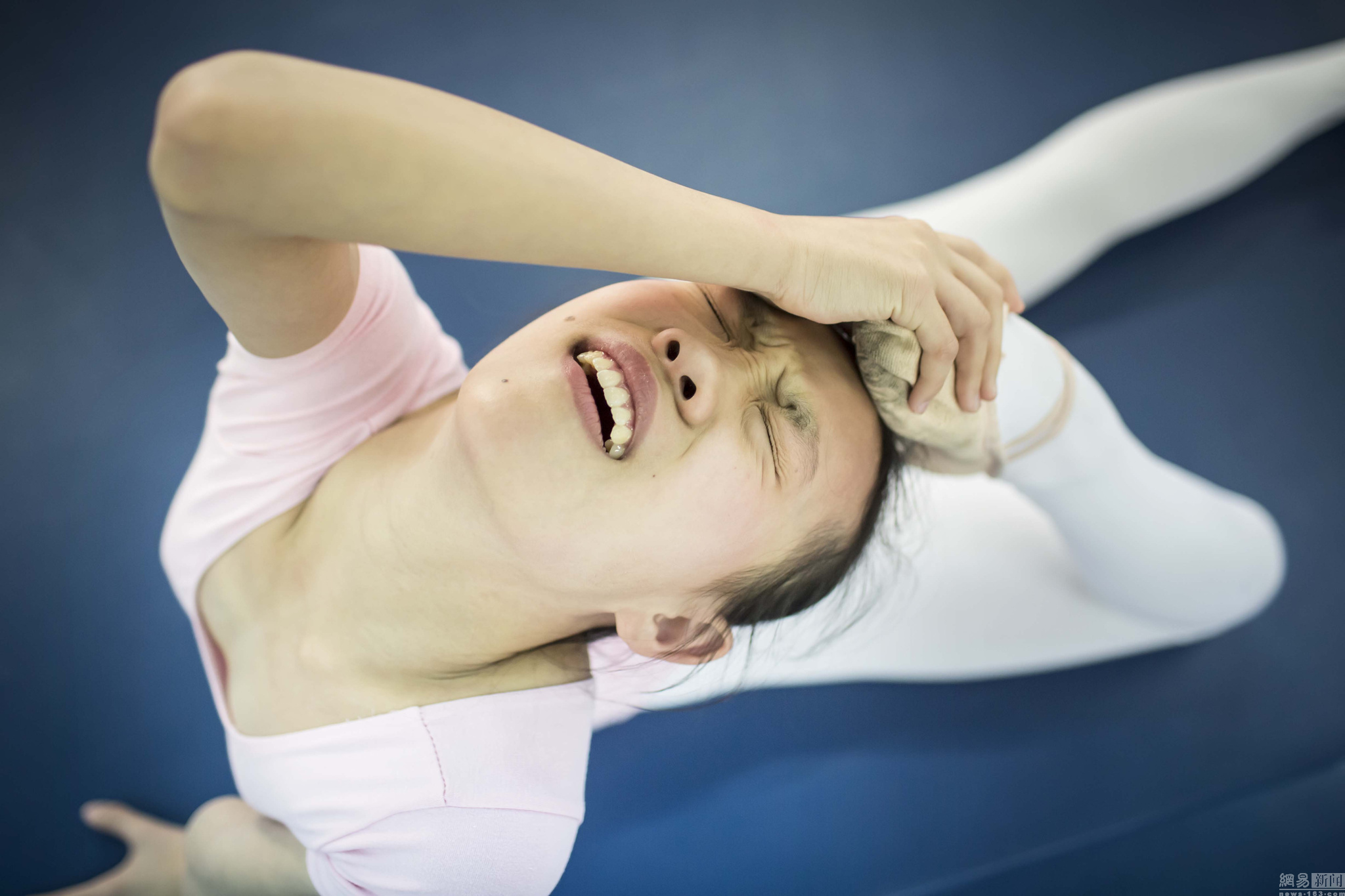 蕴芝妈妈忙碌着帮孩子们盘发,这是芭蕾舞课前的必要工作。花泳队就像一个大家庭,谁的家长有空都会主动做一些帮助集体的事情,开始上课后她就在一旁静静地注视着女儿。要练好水上芭蕾,陆地上的舞蹈、力量、耐力、柔韧性等各种身体训练是基本功。蕴芝的每一次“开、绷、直、立”时的用尽全力,每一次下腰、倒立时的挣扎,都尽收妈妈的眼底。看着孩子在镜子前把腰背折成180°时疼得“吧嗒吧嗒”掉眼泪,蕴芝妈妈心里虽然心疼,但脸上却不动声色。芭蕾课上,小队员在进行柔韧训练,此项训练对于小队员做水下动作时关节的开度有帮助。图/视觉中国