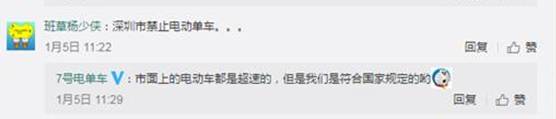 不过,1月5日上午就有深圳市民拍照上传微博,投诉到深圳市交警局,深圳市交警转发微博明确表示,共享电单车违反规定要被罚。与此同时,记者注意到有网友留言“7号电单车”并提醒,深圳市禁止电动单车,当时,公司是这样回复的: