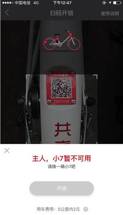 每日经济新闻(微信号:nbdnews)记者随后就此事致电7号电单车客服,对方表示,无法打开的原因为电单车电量不足,近日亦有用户称电单车骑行两到三公里发现电单车电量不够,用户体验非常不好,所以公司对电量低的单车进行了锁定。