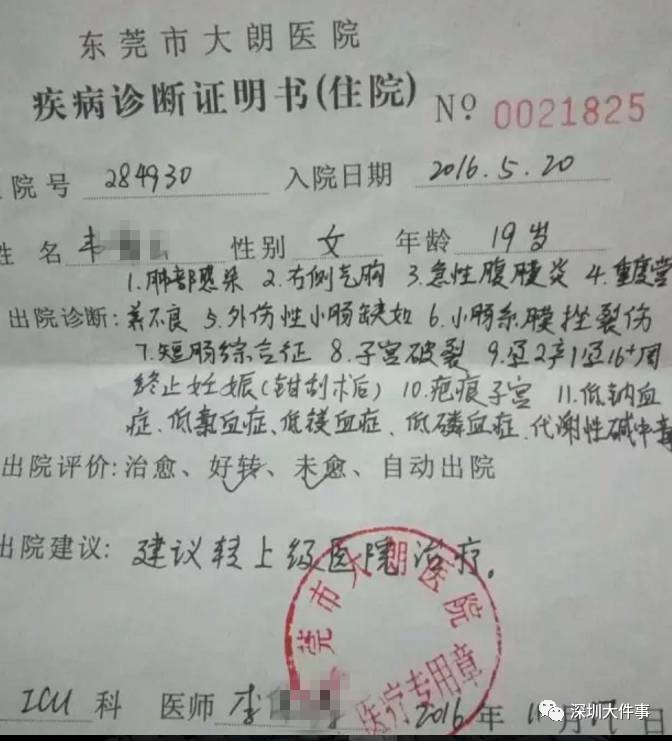 东莞医院的医生反馈说,患者的小肠被截断,已经全部感染,随时有生命危险。