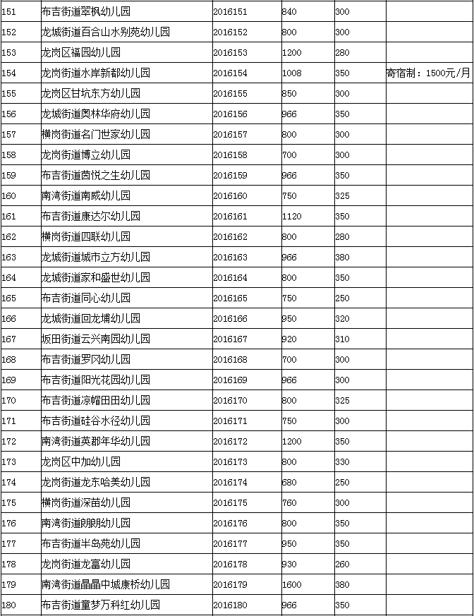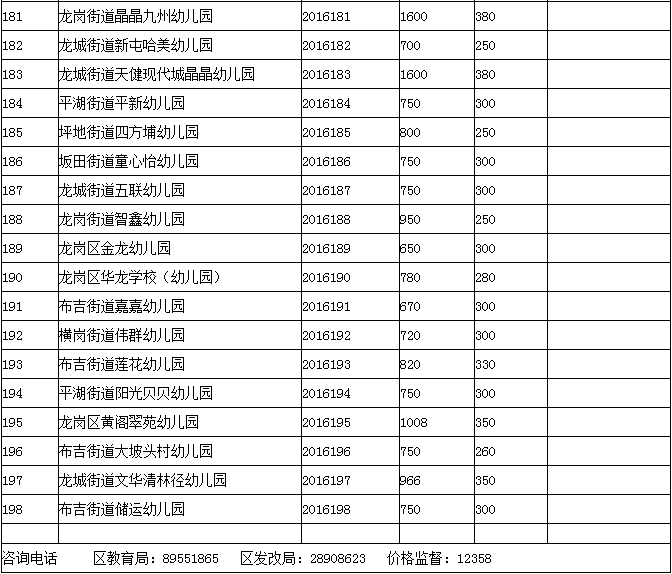 【注】此表格为本次价格调整的幼儿园备案登记表,如您宝贝所在的幼儿园不在本表格中,即无价格调整,下个学期按照原价格缴费即可。
