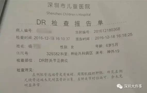2016年12月18日,DR检查显示左侧肱骨远端骨折。