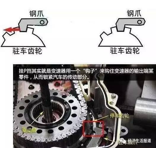 因为当你挂入P档时,通过一个卡子扣住齿轮!无论是DSG变速箱,还是CVT变速箱。如果后面有车追尾,你的变速箱就可能废了。