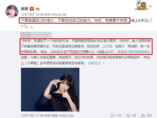 正当红时,徐娇没有乘胜追击,她毅然决定远赴美国求学,一度遭外界讽刺不懂珍惜机会,最近出席活动时,回想这段时间的心路历程,表示了她毫不后悔做了出国留学的决定,自信地说:“现在的我,做一切我想做的事,谁说20岁的女生不知道自己想要什么?”