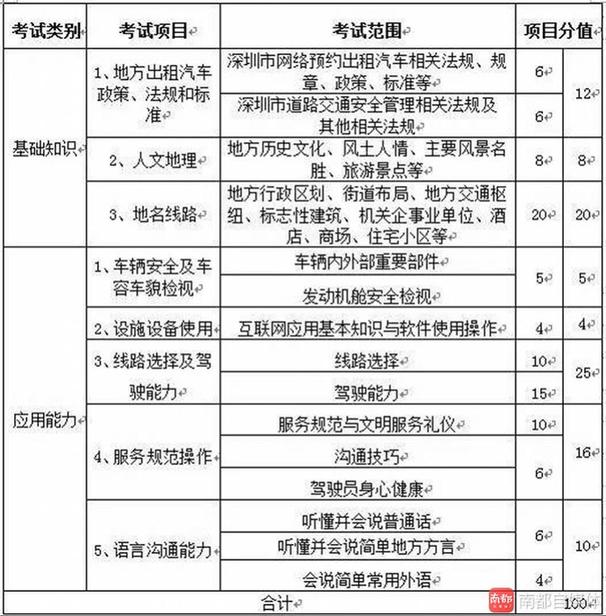 深圳网约车司机将迎来“大考”。深圳市交委发布网约车区域科目考纲,区域考试内容不仅涉及路名路线、人文地理等基础知识,还包含车容车貌、驾驶技术等“硬通货”。值得一提的是,区域科目考试总分为100分,80分为及格线。