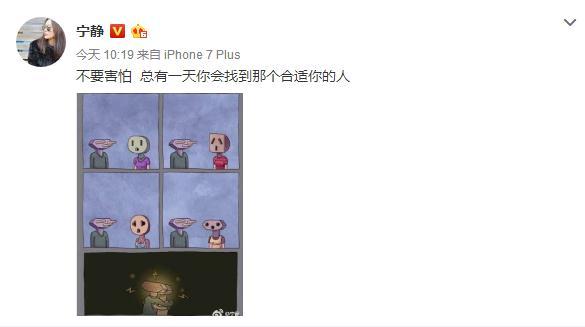 宁静最近更新了一条微博:不要害怕,总有一天你会找到那个合适你的人!