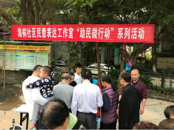 深圳新闻网盐田讯 1月3日,盐田街道海桐社区民意表达工作室于金山碧海旁边广场开展“助民微行动”宣传活动,广泛宣传及收集辖区居民的困难诉求,主要是个性化、靠单个家庭难以解决的困难,打通服务群众的“最后一公里”。