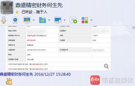 刘先生是深圳市勤进达实业有限公司的总经理。他介绍,自己公司主要经营塑胶、油漆等化工产品的销售,这笔款项是要打给深圳市鼎盛精密工业有限公司的。