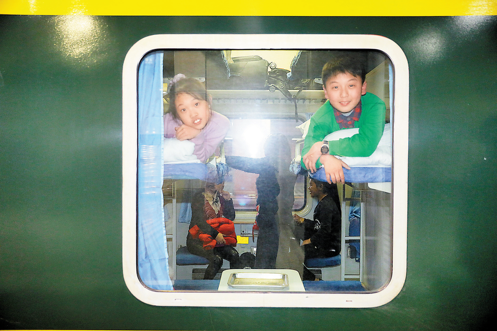 孩子躺在温暖的列车被窝里。图片由深圳晚报记者黄铭摄