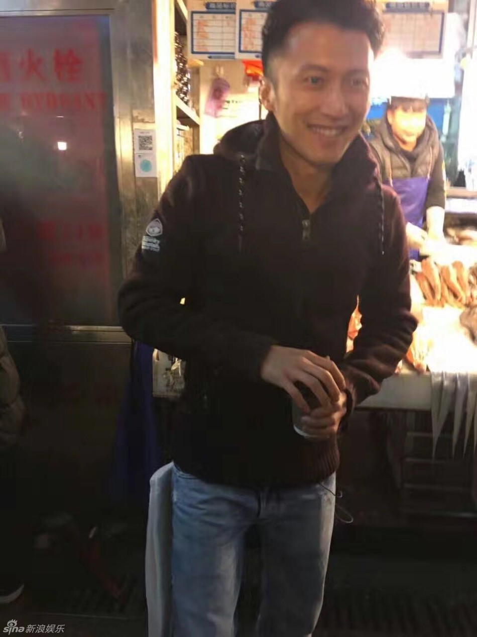 组图:谢霆锋逛菜市场心情好 买菜不忘拜早年